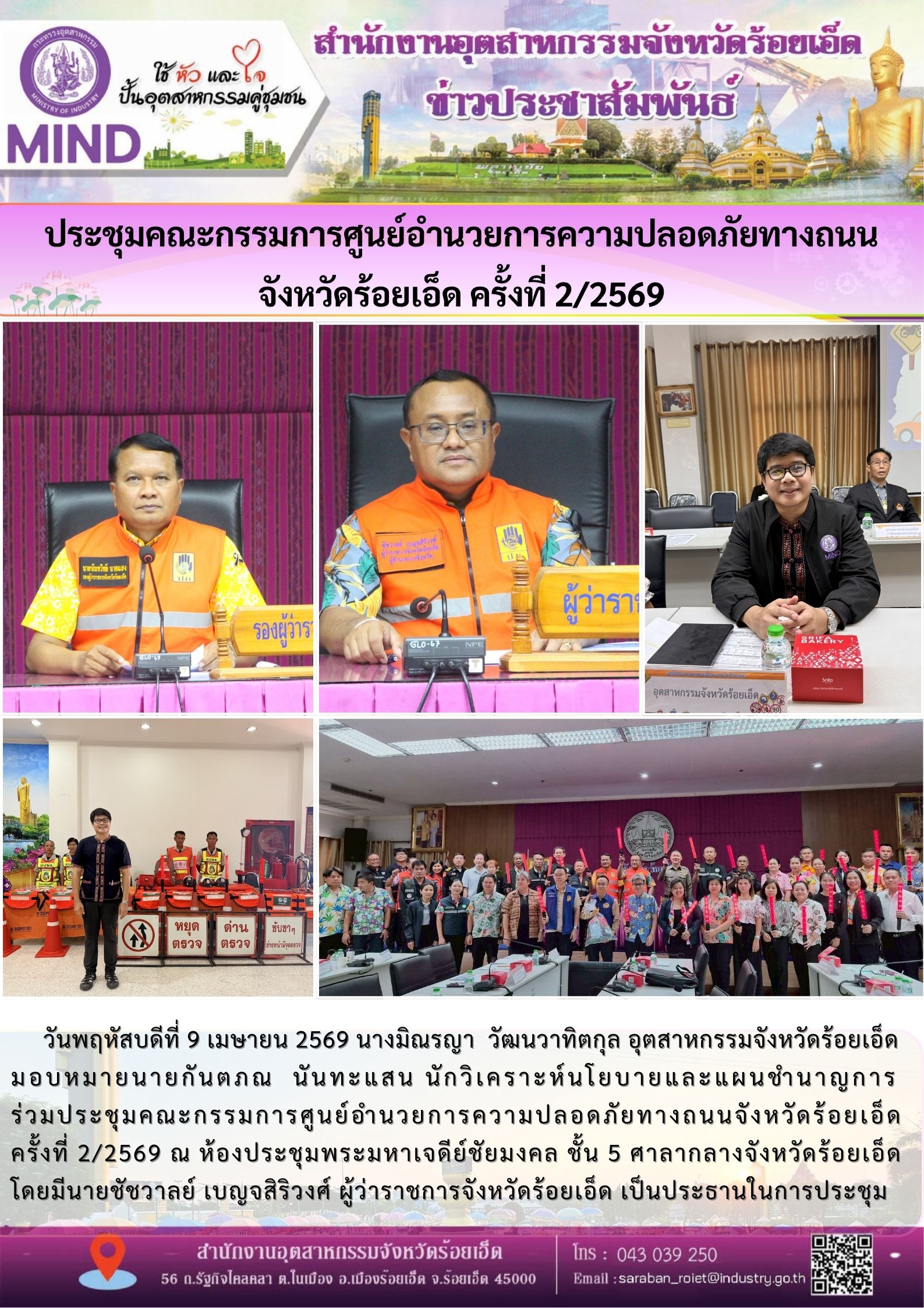 ครั้งที่ 2/2569 ณ ห้องประชุมพระมหาเจดีย์ชัยมงคล ชั้น 5 ศาลากลางจังหวัดร้อยเอ็ด