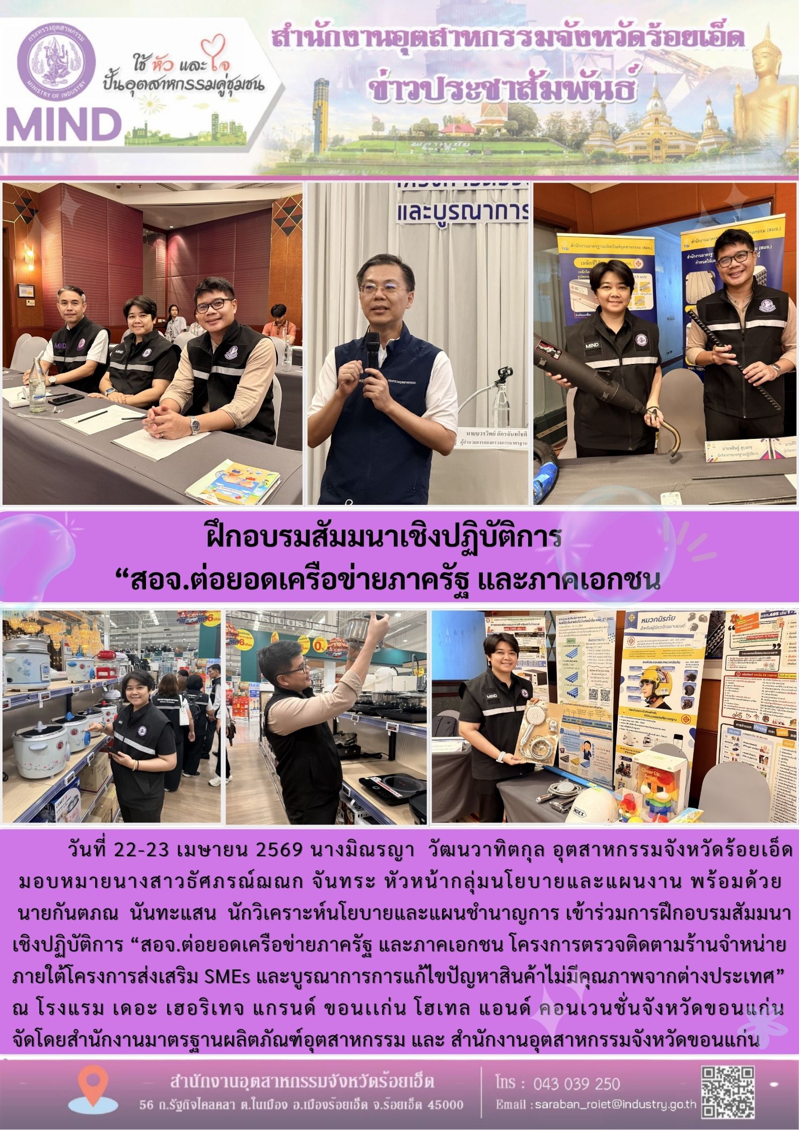 วันที่ 22-23 เมษายน 2569 นางมิณรญา วัฒนวาทิตกุล อุตสาหกรรมจังหวัดร้อยเอ็ด